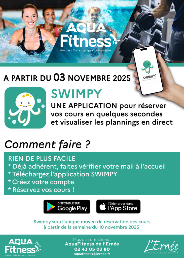 Votre expérience à l’AquaFitness de l’Ernée devient plus simple et plus connectée.